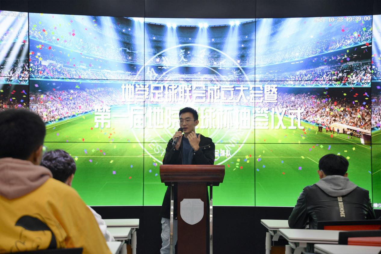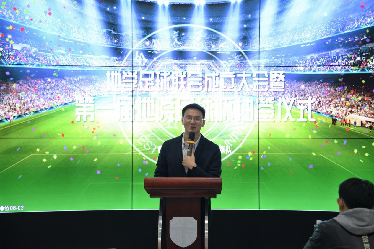 郑力晗结合自身经历向同学们介绍地学足球联会成立的初衷是为地院足球爱好者提供活动平台,促进每日大赛