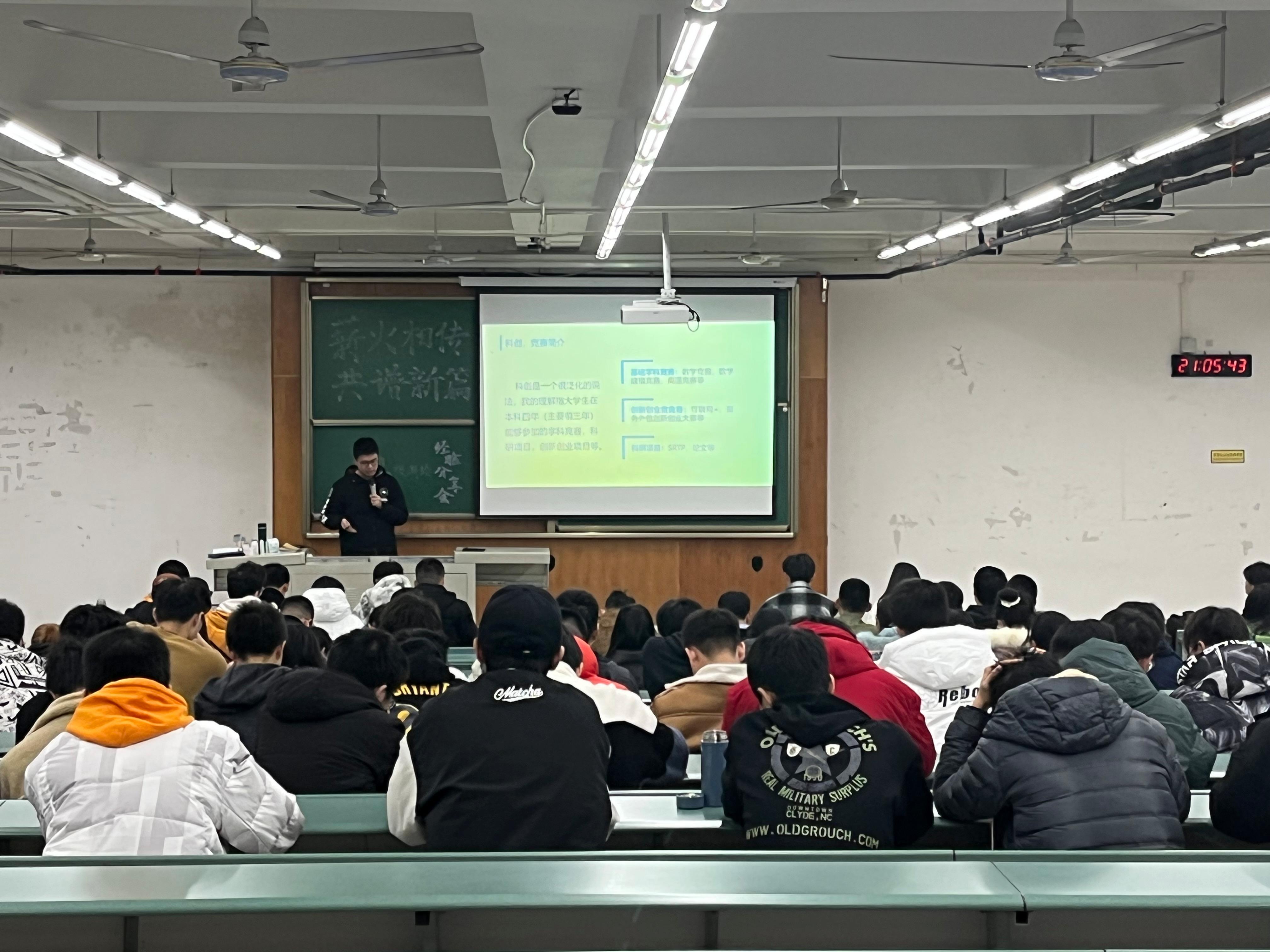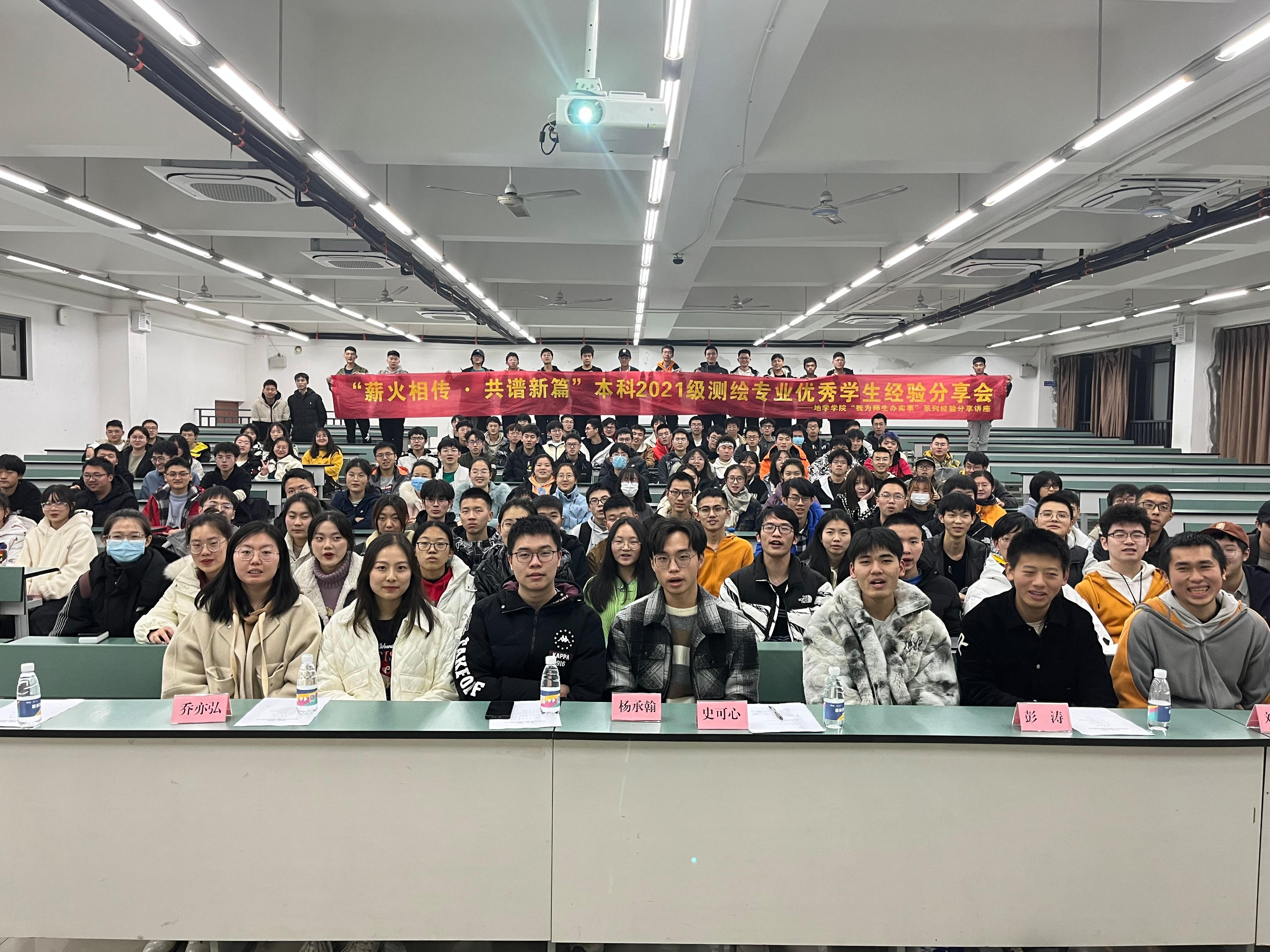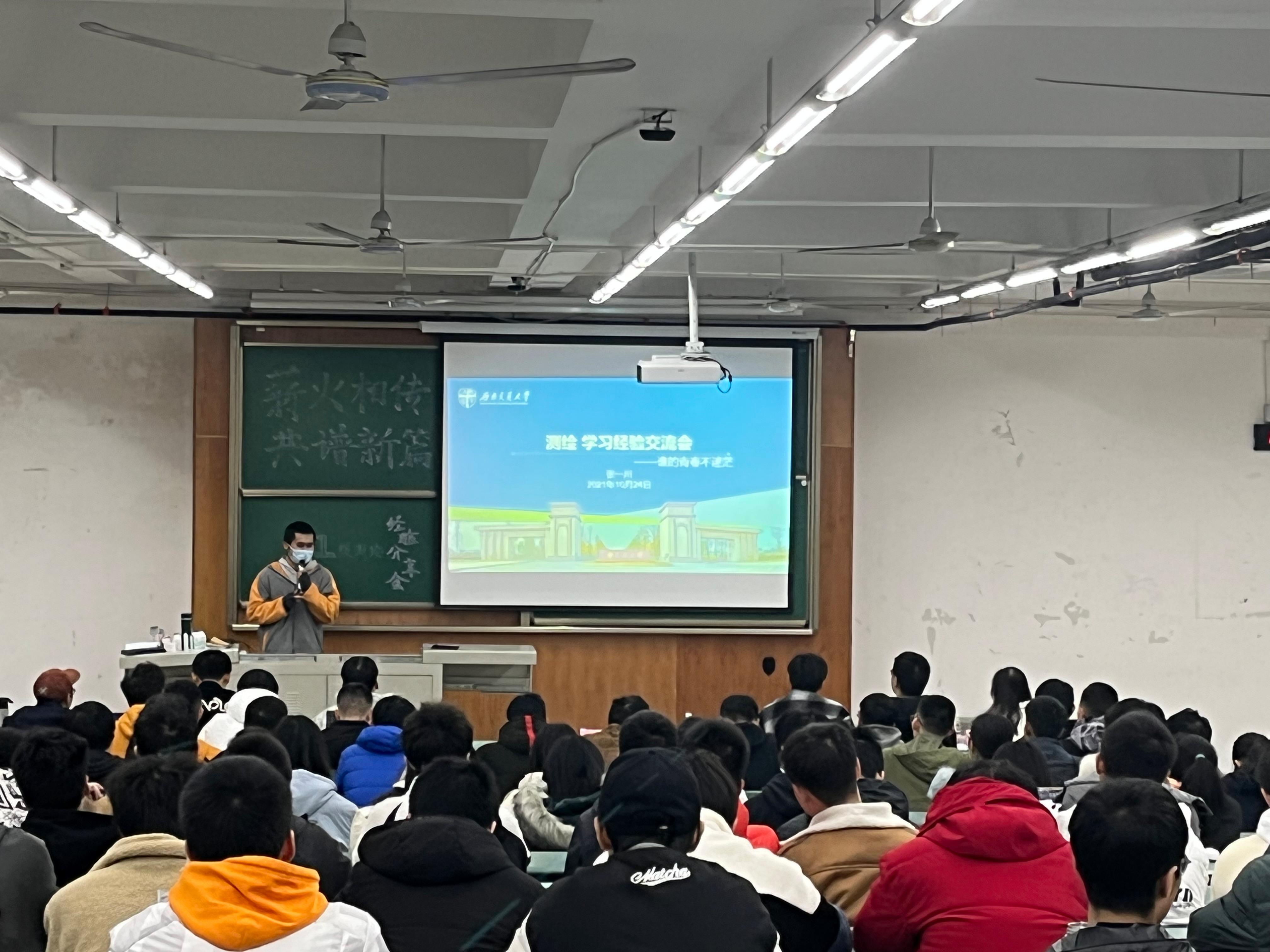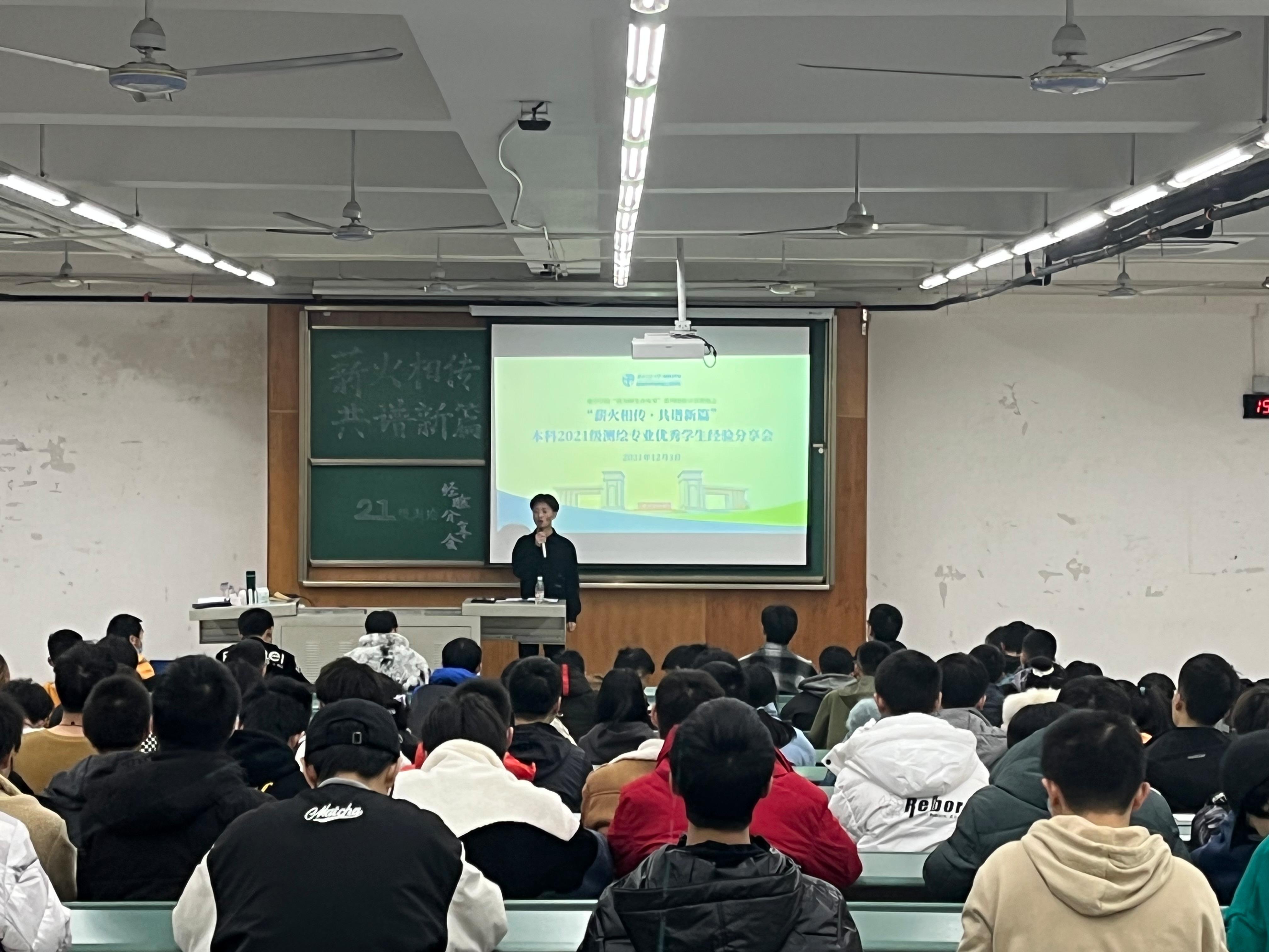 于X4350教室开展“薪火相传,共谱新篇” 本科2021级测绘优秀学生经验分享会。