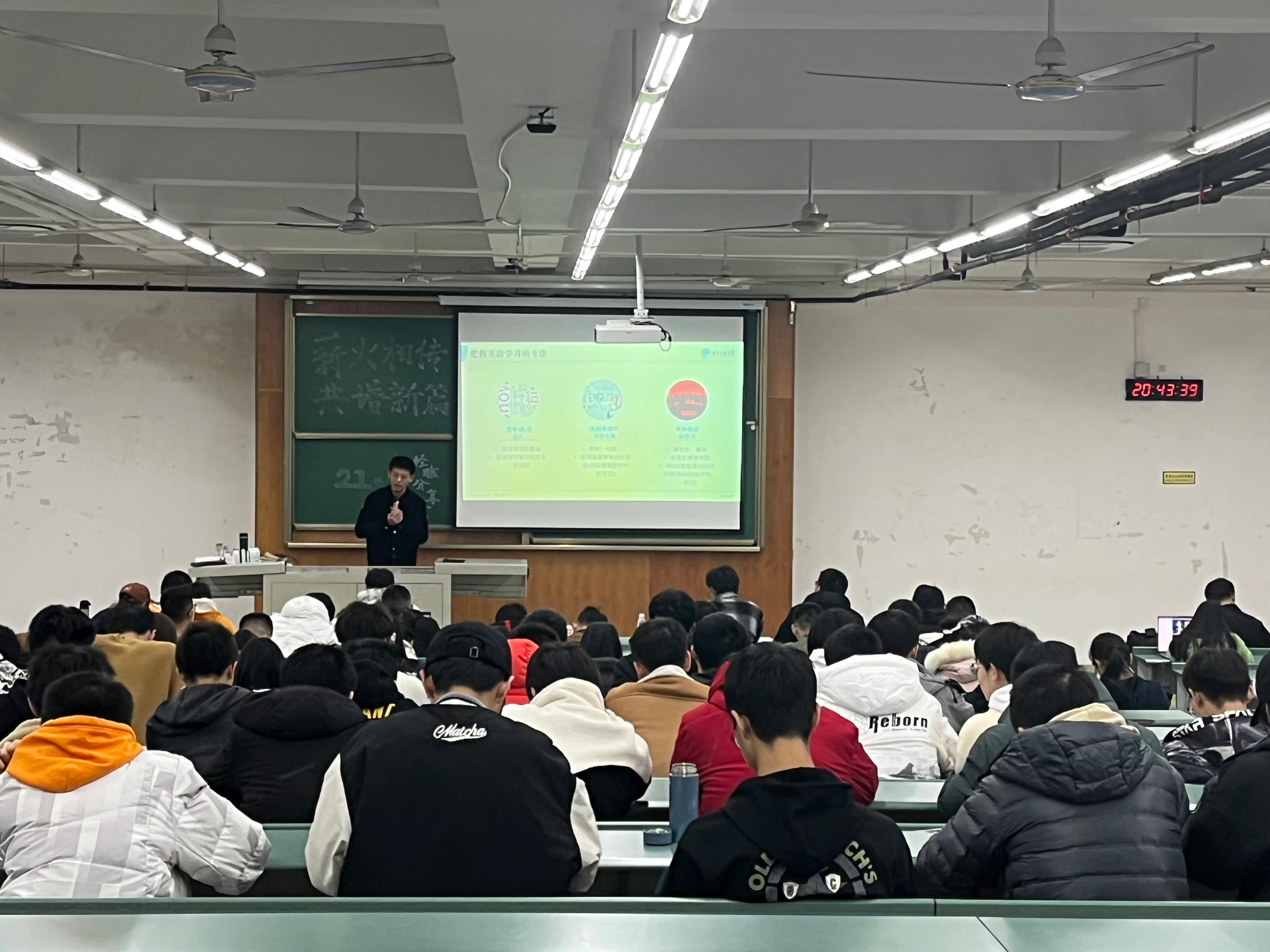 刘宇杰针对英语学习和四六级考试分享了许多英语学习的“干货”,帮助即将参加四级考试的同学们扫清疑惑。不仅讲解了学习英语的技巧方法,还分享了许多学习资源。