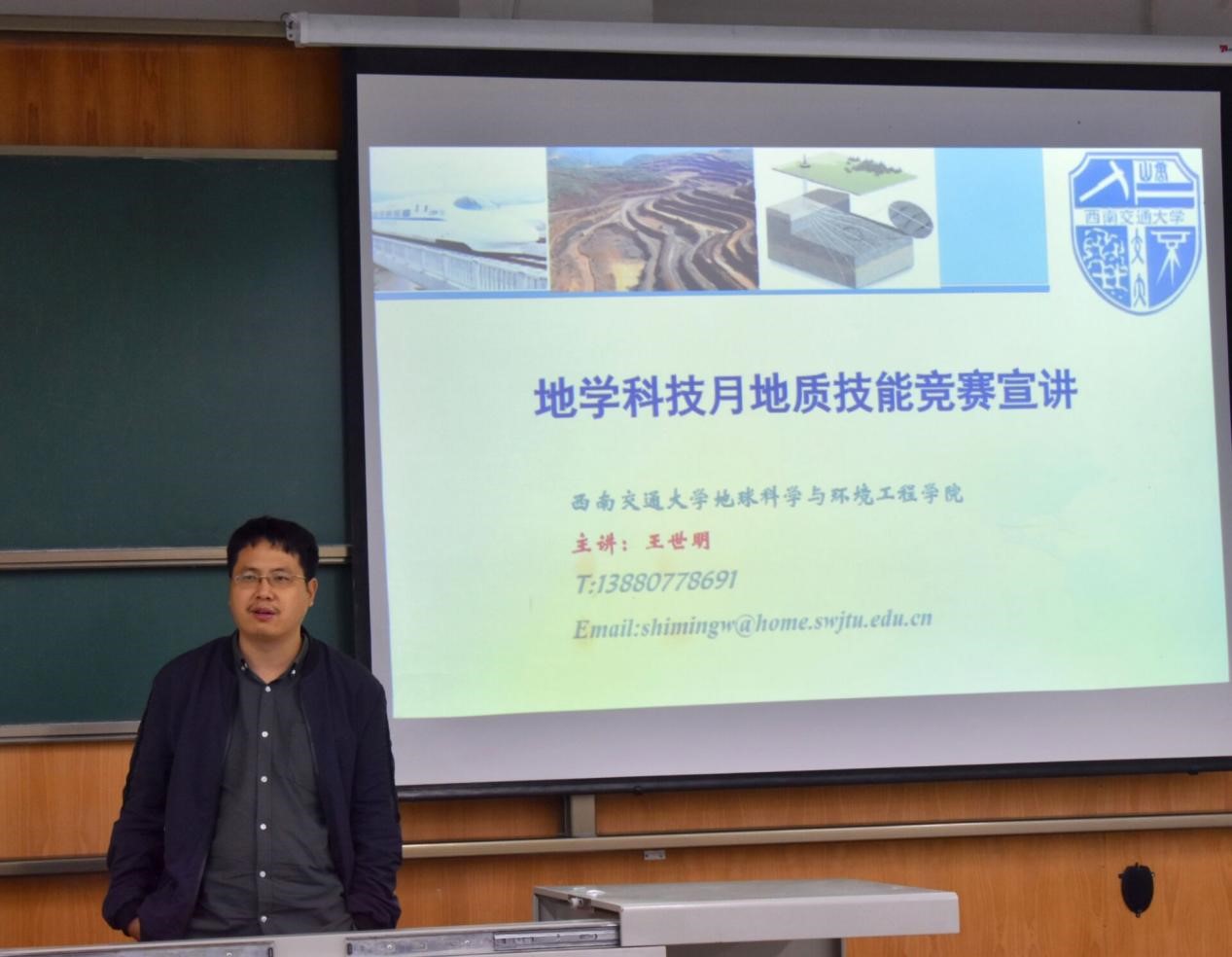 地质类宣讲会于4月15日晚在X4158举行。地质技能竞赛指导老师王世明老师受邀主讲。