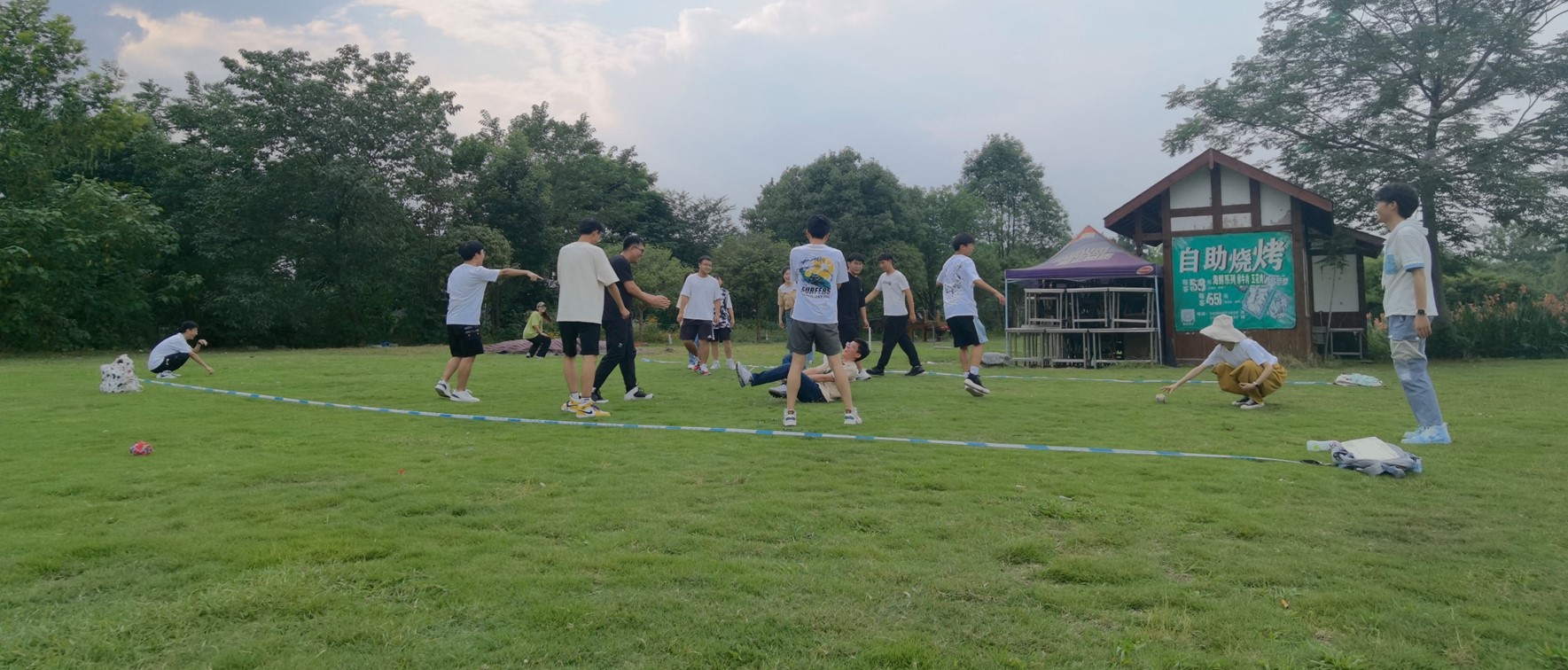 下午五点,参加素质拓展的同学与老师在青杠树村窦章堰文化广场集合。本次素质拓展活动同学们分作两组,由李婧老师担任主持和总裁判,罗然老师、赵瑞涵老师加入同学们的队伍。活动共分三个项目:两人三足、扔沙包和拔河大赛。这些经典项目帮助大家在团队竞赛中磨炼协作能力,克服心理惰性,提升解决问题的毅力,进而启发想象力与创造力。两支队伍在合作中确定了自己的队名,展示了不同风格的团队文化。李婧老师宣布正式开始后,两组同学很快投入比拼。在活动过程中,老师同学们同组之间团结友爱,逐渐形成了团队默契,不同组之间活跃交流,在竞争之外互帮互助,表现出热情活泼、“友谊第一,比赛第二”的精神风貌。
