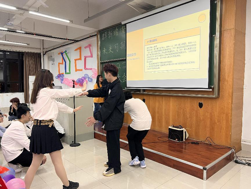 活动伊始,全体成员观看了宣传部22级新部员制作的快闪作品,总结了中心过去的一学年的风采,并展望了中心未来一学年的目标。让新成员了解了综合素质中心自成立以来举办的丰富活动,让大家对今后的工作事务有了更清晰的认识。接着,文艺部带来了精彩的开场舞表演。在活跃的气氛中,指导老师陈荩娜上台讲话。陈老师对新成员的到来表示热烈欢迎,也针对综合素质提升中心未来工作的开展提出了意见和建议,表达了对成员们社交和能力提升方面的美好祝福与期望。