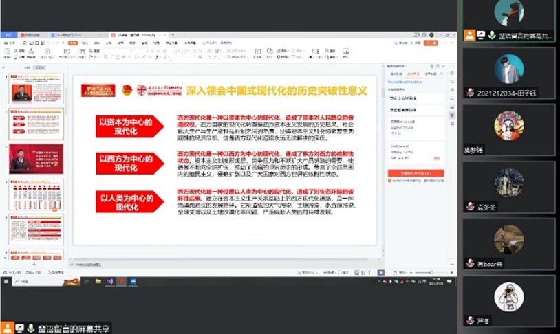 全体同学与老师的支持下,本次“青春践行二十大——中国式现代化对大学生生涯发展的启示”主题班会团课活动顺利结束。