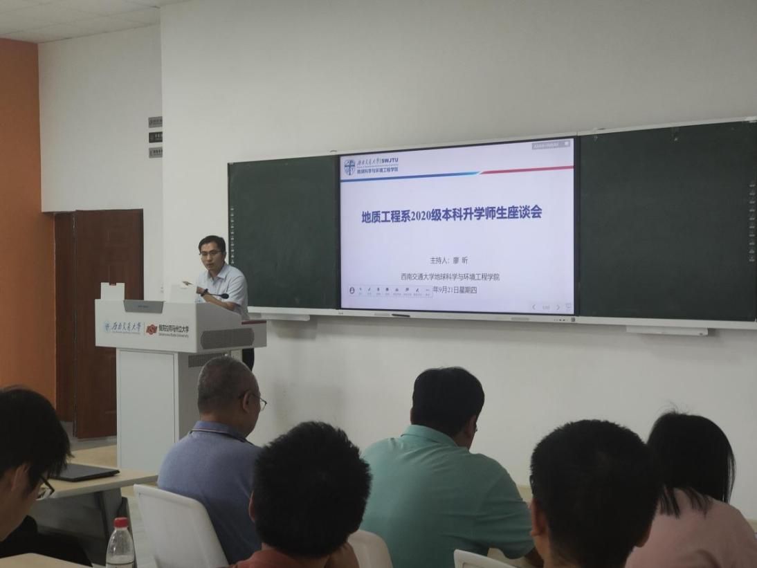本科生升学相关工作,9月21日下午,学院地质工程系于X4247教室开展升学师生座谈会。此次会议面向有意升学的地质工程专业学生,旨在帮助同学们了解本专业的主要研究方向,解答同学们升学的相关疑问,指导同学们做出适合自己的选择。本次座谈会由廖昕老师主持,巫锡勇、王玉峰、王世明、张云辉、肖勇、张志厚、陈仕阔和张健等优秀研究生导师受邀参会。