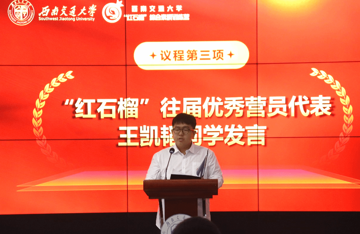往届优秀营员代表王凯韬表示,自己在训练营中受益匪浅,并收获了三方面的感悟:一是加强沟通有助于各民族同学相互了解,二是学习对提升个人素质有重要作用,三是应心存感恩之情、厚植爱国主义情怀。同时,他勉励新营员们做讲政治、讲团结、讲学习、讲担当的表率。