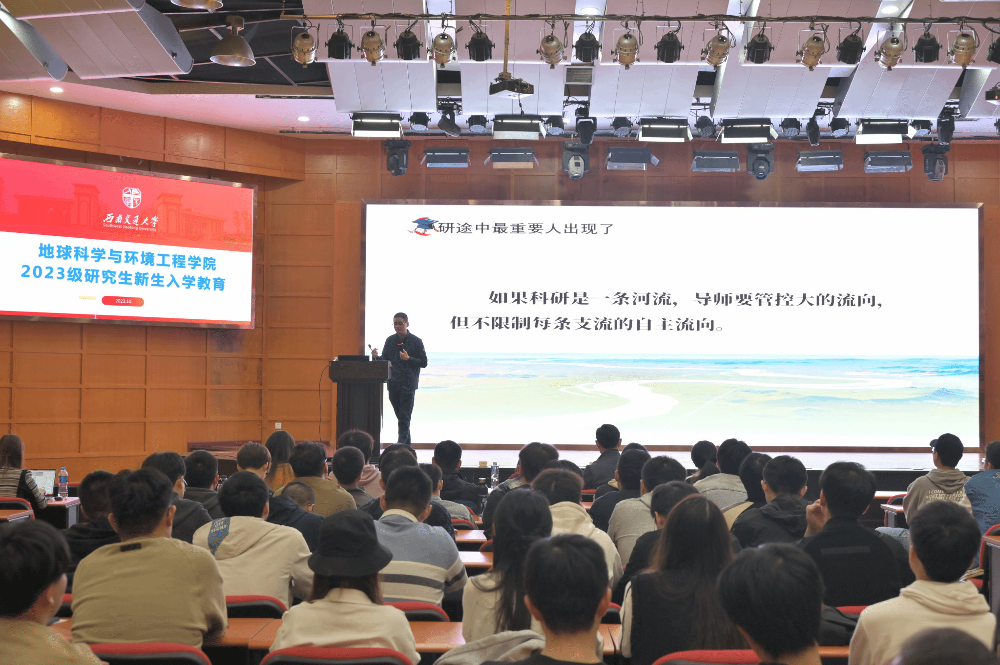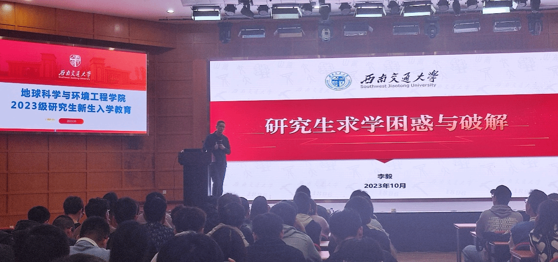 于2023年10月11日晚开展了主题为“研究生求学困惑与破解”的生涯教育讲座。本次讲座由党委学生工作部副部长李毅主讲,地学学院党委副书记郑波主持,辅导员何杨以及2023级硕博新生参加此次活动。