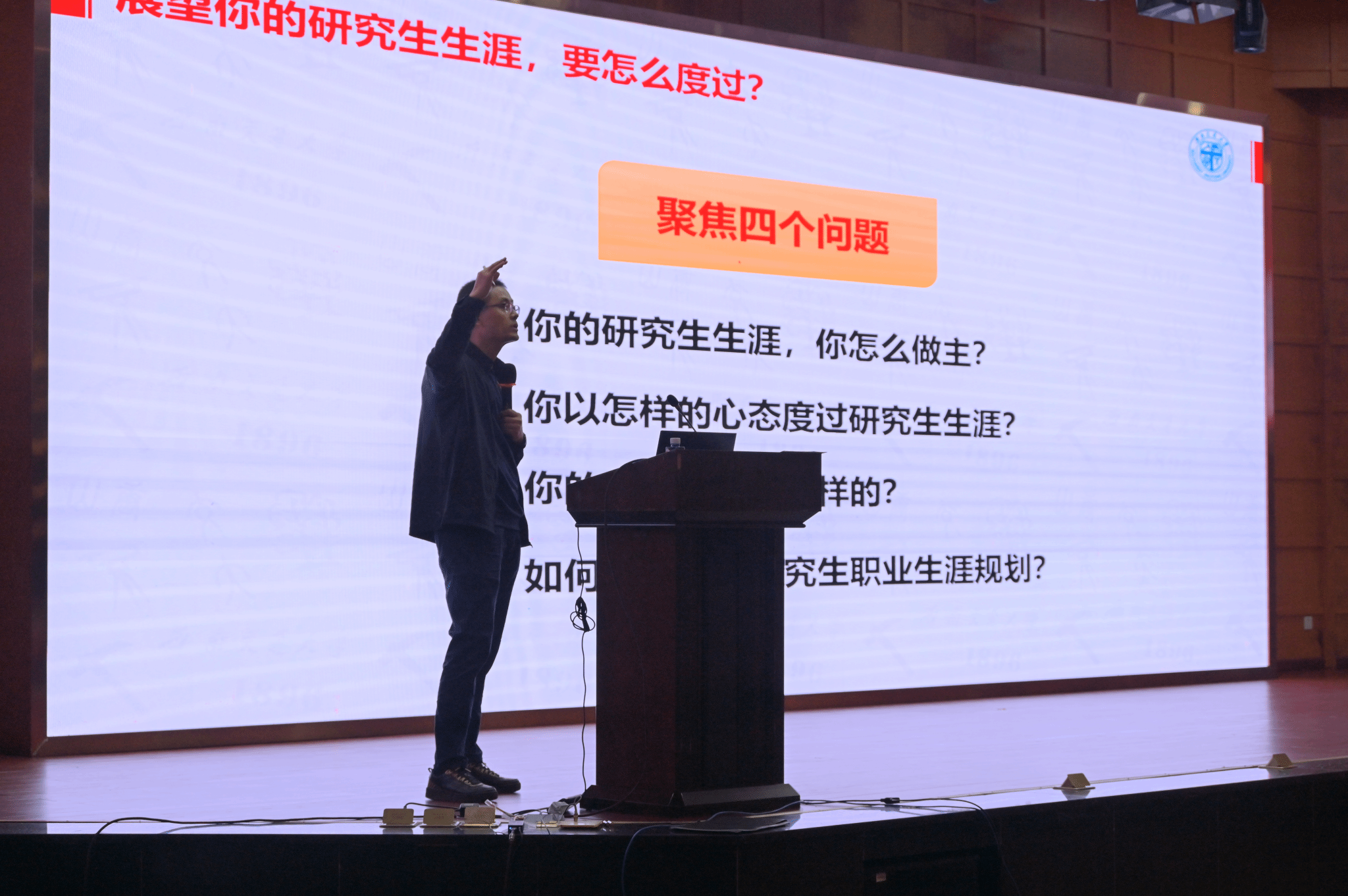 随后,李毅老师介绍了在研究生生涯中会面临的各种困扰以及进行自我调适的解决方法,强调注意心理问题的自我调试,以积极健康的心态度过研究生生涯。