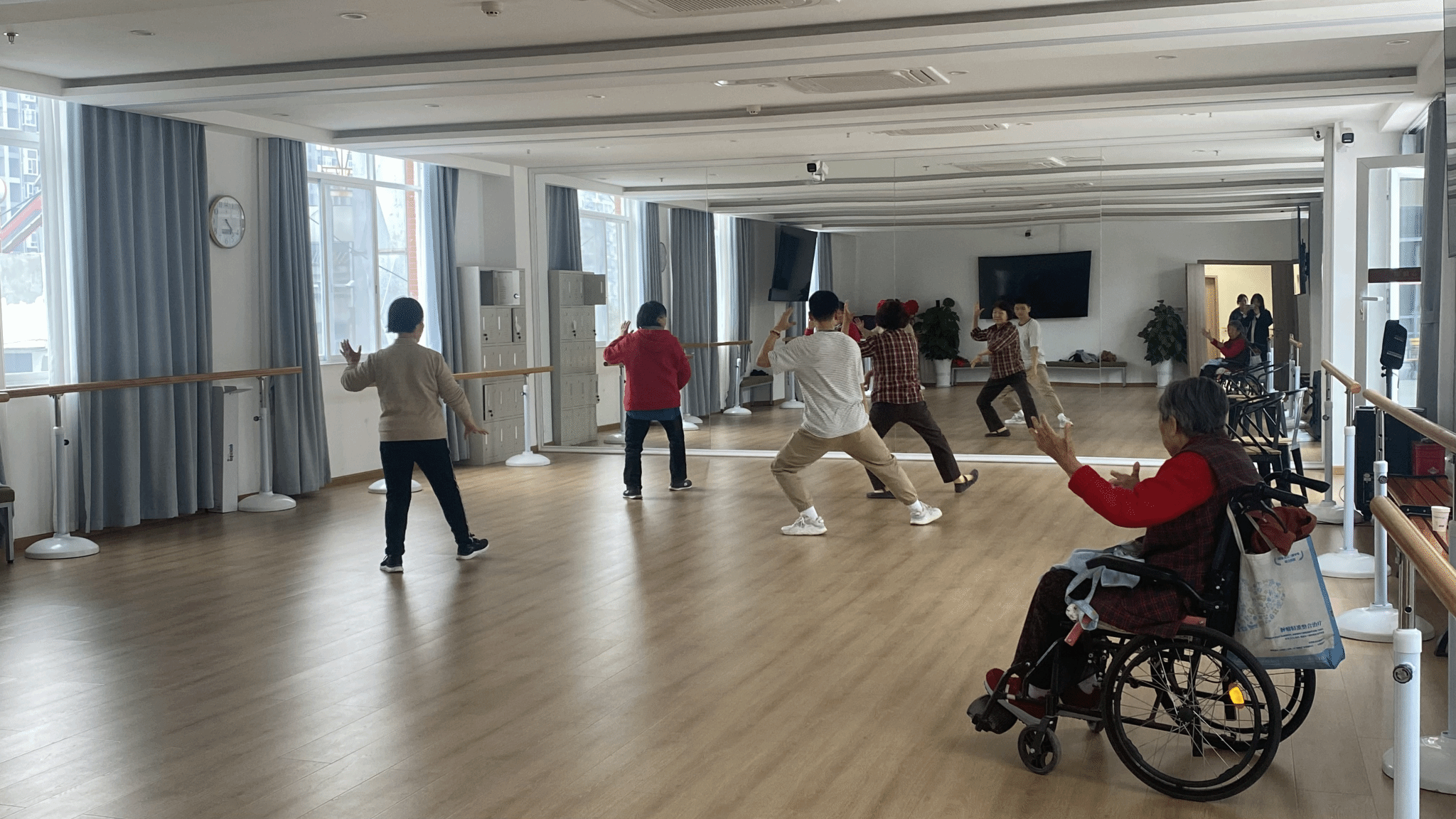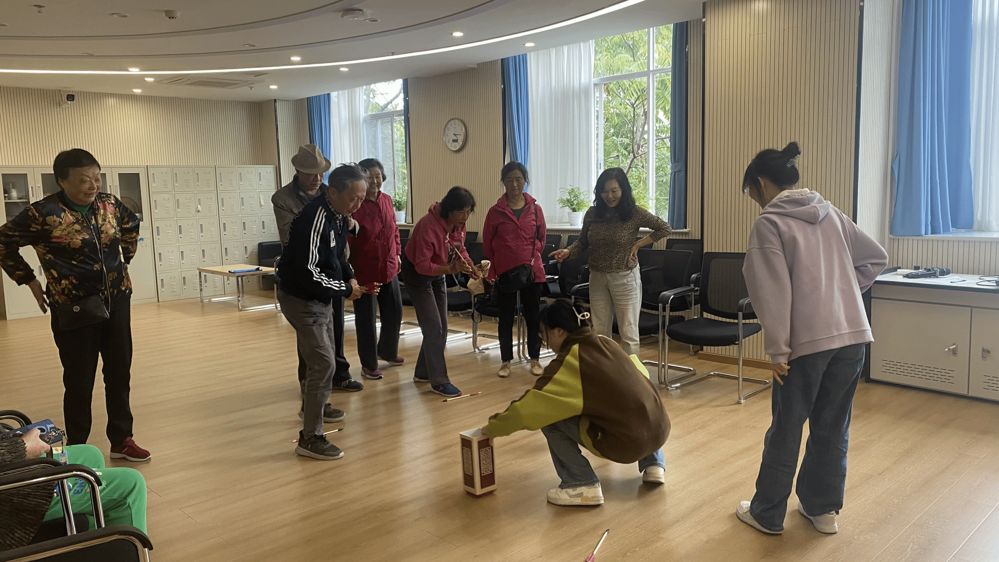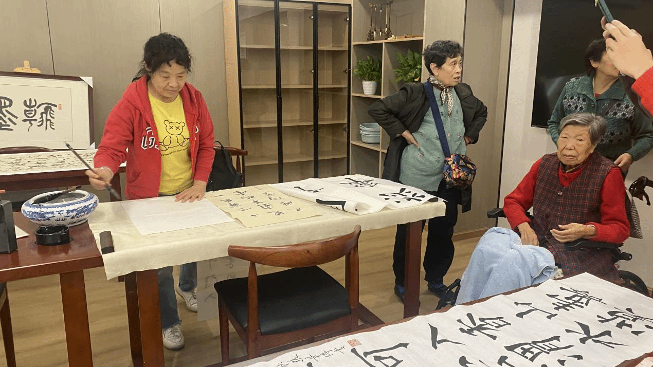 游园活动成为本次活动的最大亮点。有在棋牌室开展,教师组队对局的下棋和麻将活动;有在书画室开展,在同学/老师的指导下完成一幅书法/水彩画作品的书画活动;还有在乒乓球馆开展由老教师组队对局的乒乓球活动,以及同学与老教师共同参与的太极和投壶游戏。