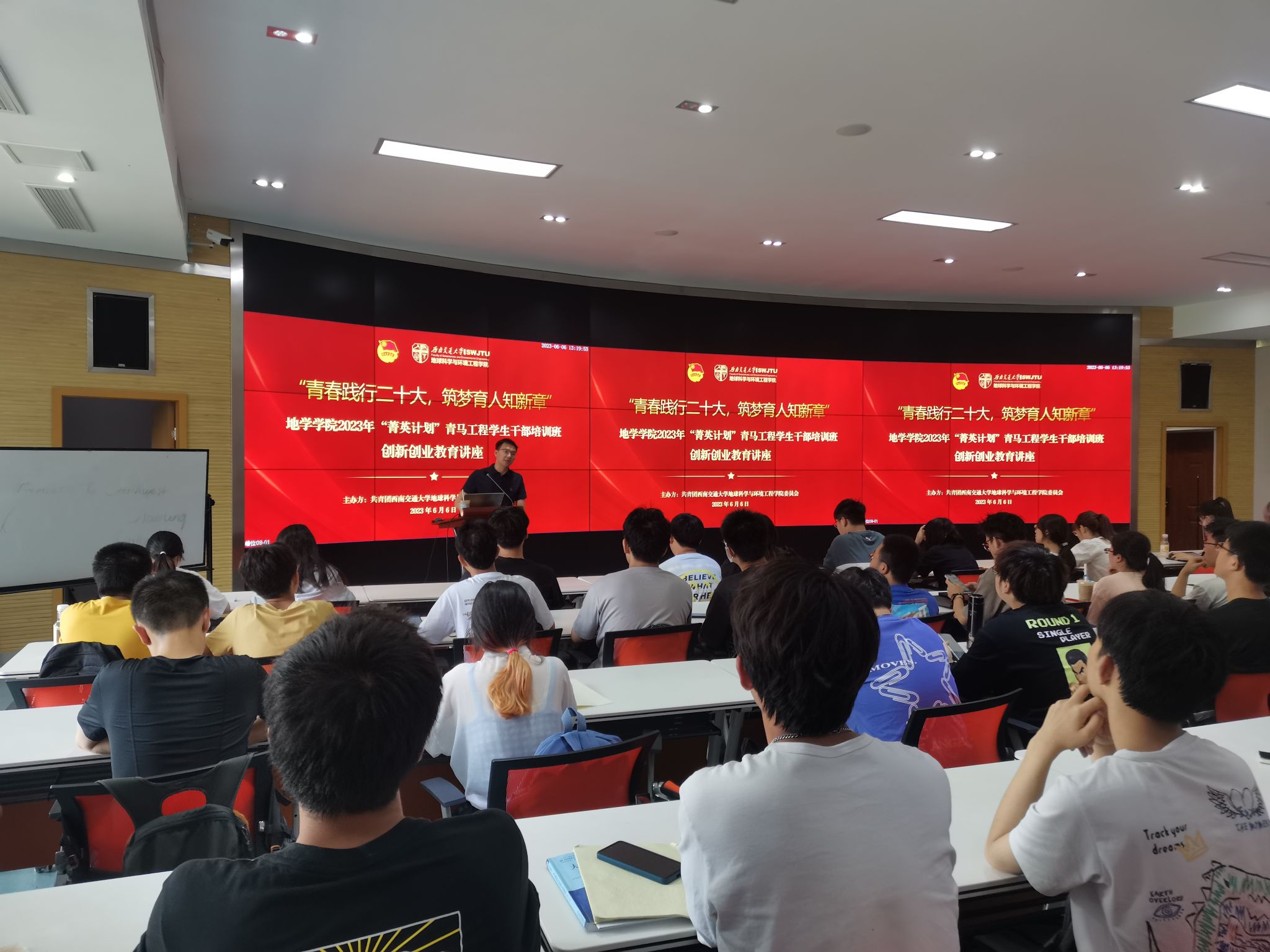 团委书记杨都强结合目前团学组织架构开展创新创业教育讲座,号召同学们联系工作经验,探索个人在组织构架下的发展潜能,同时为优化组织构架、提升工作效率探索更新的地学方法。