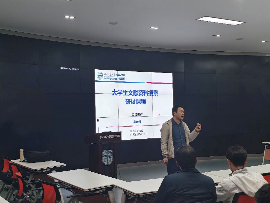 2024年3月21日晚,地质系于X4243顺利开展了毕业设计(论文)系列讲座第一讲,由凌斯祥副教授为地质系的同学们讲解如何进行本科论文资料搜索。讲座主要围绕文献阅读与管理、中英文论文搜索渠道、文献的阅读与写作等方面展开,并在此基础上就搜索论文的时间范围、期刊等级、推荐类型等进行了全方位的讲解。让同学们对如何搜索论文、搜什么样的论文以及如何整理收集文献有了具体的了解。