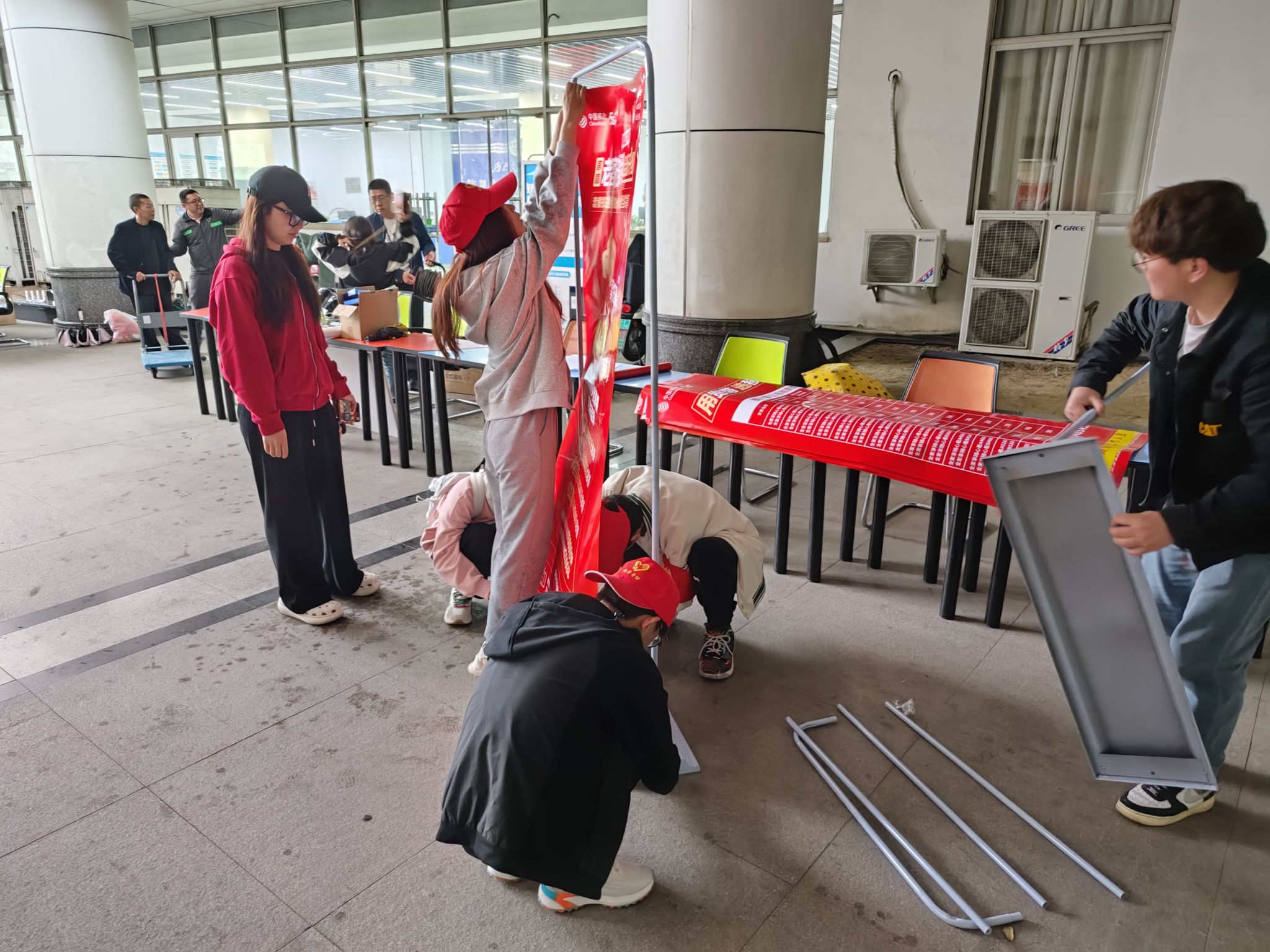 图3 志愿者协助布置场地