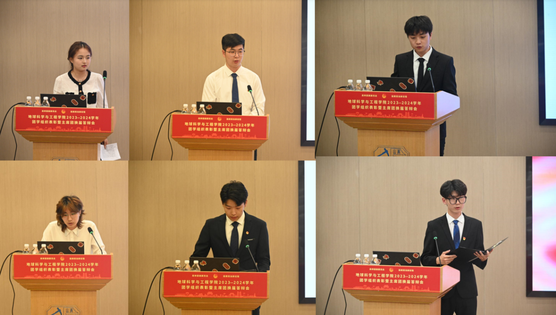 2023-2024学年团学组织干部表彰暨主席团换届答辩会圆满落幕。选举结果将于2024年6月4日上午在学院网站公示。祝愿各团学组织主席团成员能够接下责任的接力棒,执笔绘卷,再创辉煌!