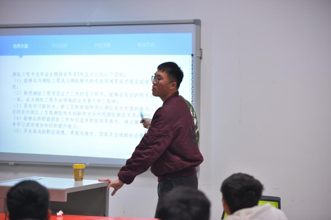 徐琦向同学们介绍了保研需要的准备工作和测绘大类各专业的保研科目,并建议同学们打好基础,好好学习,实现保研的目标。