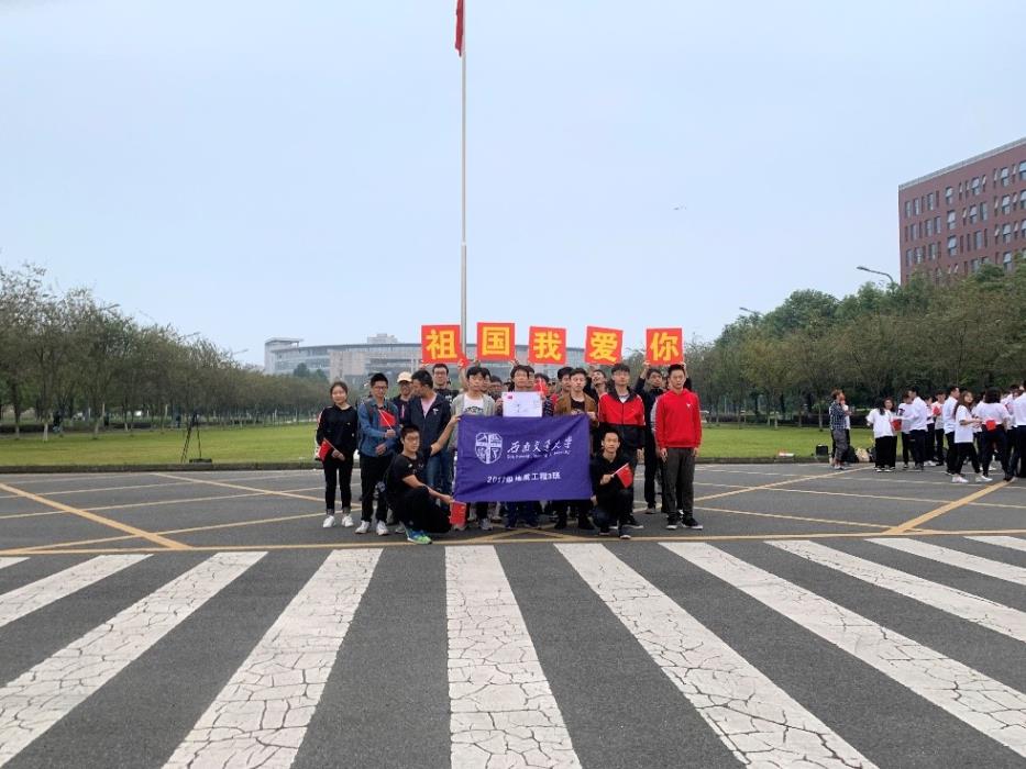 2019年9月23日,地质三班的同学们与国旗班,党支部,学生会的同学们以及辅导员李国欣老师在国旗台下一起升国旗,唱国歌,一起用青春告白祖国。