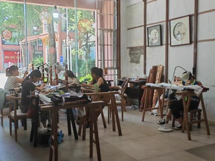 活动当日,参与者们首先踏入了风景如画的蜀绣公园,这里不仅自然风光旖旎,更因融入了蜀绣元素而显得别具一格。漫步其间,仿佛穿越千年,与古代绣娘展开心灵对话。随后,一行人来到蜀绣工坊——这座传承千年技艺的圣地。在这里,大家近距离观摩了蜀绣的全过程。从挑选丝线、构思设计,到一针一线的精心刺绣,每一个环节都凝聚着匠人们的智慧与匠心。资深绣娘们娴熟的技艺,让团队成员们惊叹不已,也深深感受到了蜀绣文化的博大精深。