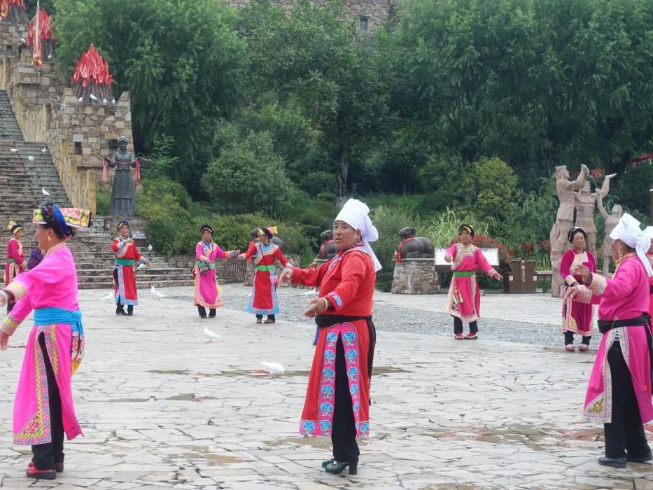 第一天,所有成员集体参观了茂县的中国古羌城,根据游览指南我们从各个不同的角度重新认识了羌族。还未到古羌城,我们就听到了从广场上传来的有文化气息的浑厚悠长的歌声,走近一看,原来是羌族人围成一圈载歌载舞,她们穿着羌族的传统服饰,气氛活跃,满满的生机与活力。然后映入眼帘的是宏伟壮观的碉楼,据介绍,羌族碉楼多建于村寨住房旁,高度在10至30米之间,用以御敌和贮存粮食柴草。碉楼有四角、六角、八角几形式。有的高达十三四层。建筑材料是石片和黄泥土。走进碉楼,就会发现一群绣花缎的羌族人,她们那么安静,带着浓厚的生活气息。羌族人民的挑花刺绣,有着悠久的历史。古羌人擅用自制工艺品装饰、美化自己的生活。人们穿的衣服上的图案都是自己绣的,羌族妇女善于运针走线、拧线织锦,刺绣佳作甚多。最后我们来到羌族历史而人物纪念馆,有炎帝纪念大殿和李元昊大殿,庄严而又肃穆。晚间我们有幸参加了一对新人的婚礼,虽然没有见到新娘和新郎,但是了解到了他们的祝酒文化。