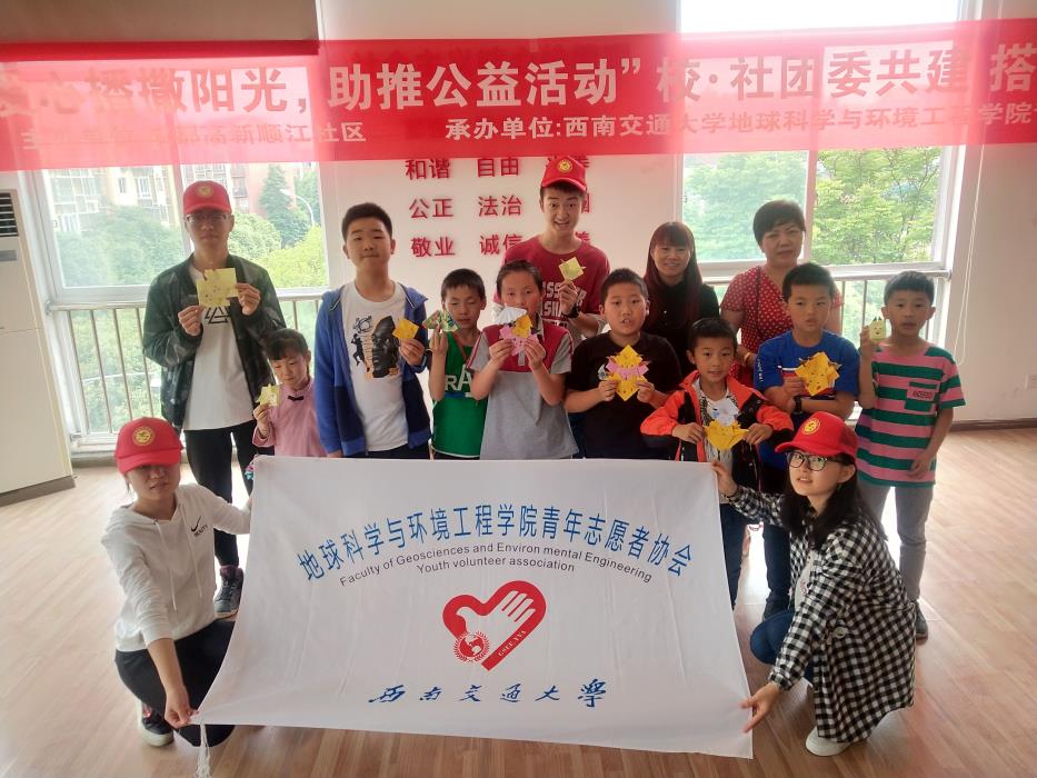 5月11日下午一点一刻,地学青协的五名志愿者在西南交大西南二门集合,乘坐出租车前往顺江社区,准备开展本学期第一次周末课堂活动。