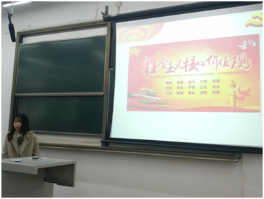 该团日活动中,由团支部书记李瑶带领支部同学学习社会主义核心价值观的内涵和意义,同时,支部同学一起观看了“践行社会主义核心价值观”的视频,更加深入了学习了有关内容。活动结束后,由支部副书记庞茵同学进行活动总结和学习分享。