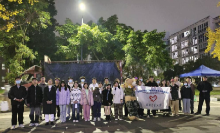 图片四 团委书记杨都强,青协指导老师徐礼扬与志愿者们的合影