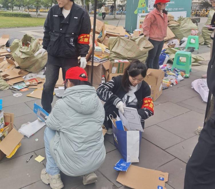 24日下午,鲜花兑换完毕后,志愿者们开始对收集到的废品进行分类。在大家的共同努力下,各类废品整理得井井有条,最终由专业回收人员统一处理。直到晚上九点,志愿者们装车完毕,彻底清理了场地的残留垃圾,并归还了所有宣传物品,至此活动圆满结束。
