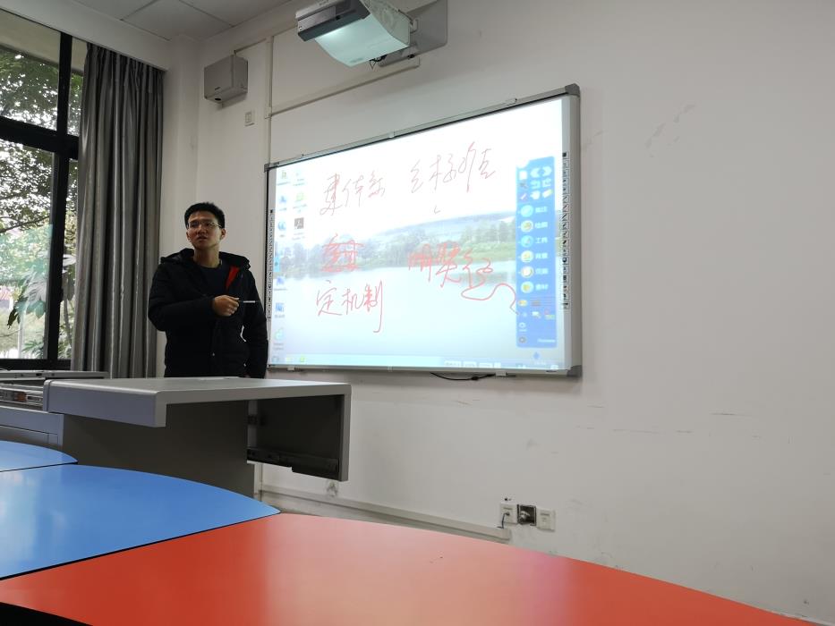 之后,杨都强老师分别从以下四点为大家讲述了如何做好班级管理。一、规则。规则是运行、运作规律所遵循的法则。俗话说“没有规矩,不成方圆”。规矩也就是规章制度,是我们就应遵守的,它是来规范我们行为的规则、条文,它保证了良好的秩序,能让班级制度更好地运行。二、规范。做到规范,也就是做到标准化,规范化。班干部在平时的任何事务中都应做到规范。比如:收集同学资料时,按学号从小到大排列,这样既方便以后能迅速找到同学信息,也方便了老师录入同学信息。班委应该养成做到规范化的习惯,做好带头作用,不仅能对班级同学有好的影响,同时也能将这种习惯运用到以后的工作中,为自己带来方便。为了让同学们很好的理解规范,杨都强老师为同学们推荐了《整理的艺术》《高效能人士的七个习惯》等书。三、自我管理。杨都强老师首先列出了两个因素:重要和紧急。接着为大家提出了这四个概念:重要且紧急,重要但不紧急,不重要但紧急,不重要且不紧急。将这四个概念划分到了四个象限,让同学们将自己的目前事务放在这四个象限中,然后根据重要紧急程度合理处理自己的事务。四、精力管理。精力管理不同于时间管理。精力管理更注重效率,面对事情应该将自己的精力选择性的投入。
