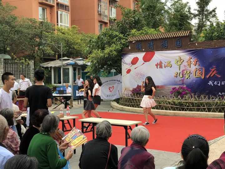 不知不觉,就快到了说结束的时刻,在志愿者的组织下,居民们有序退场,离开时的每位居民都还沉浸在节日欢快的氛围中,三五成群有说有笑的回家,活动虽说时间很短暂,但圆满的达到了其目的,宣扬中华传统节日,迎接中秋国庆节的到来,唤起老人们的回忆,直观地让年轻人感受中秋国庆节的点点滴滴。