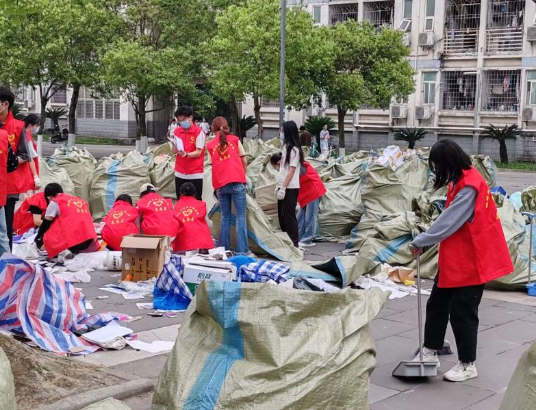 活动当天下午,鲜花兑换完毕后,志愿者们开始对收集到的废品进行分类。在大家的共同努力下,各类废品整理得井井有条,最终由专业回收人员统一处理。直到晚上九点,志愿者们装车完毕,彻底清理了场地的残留垃圾,并归还了所有宣传物品,至此活动圆满结束。