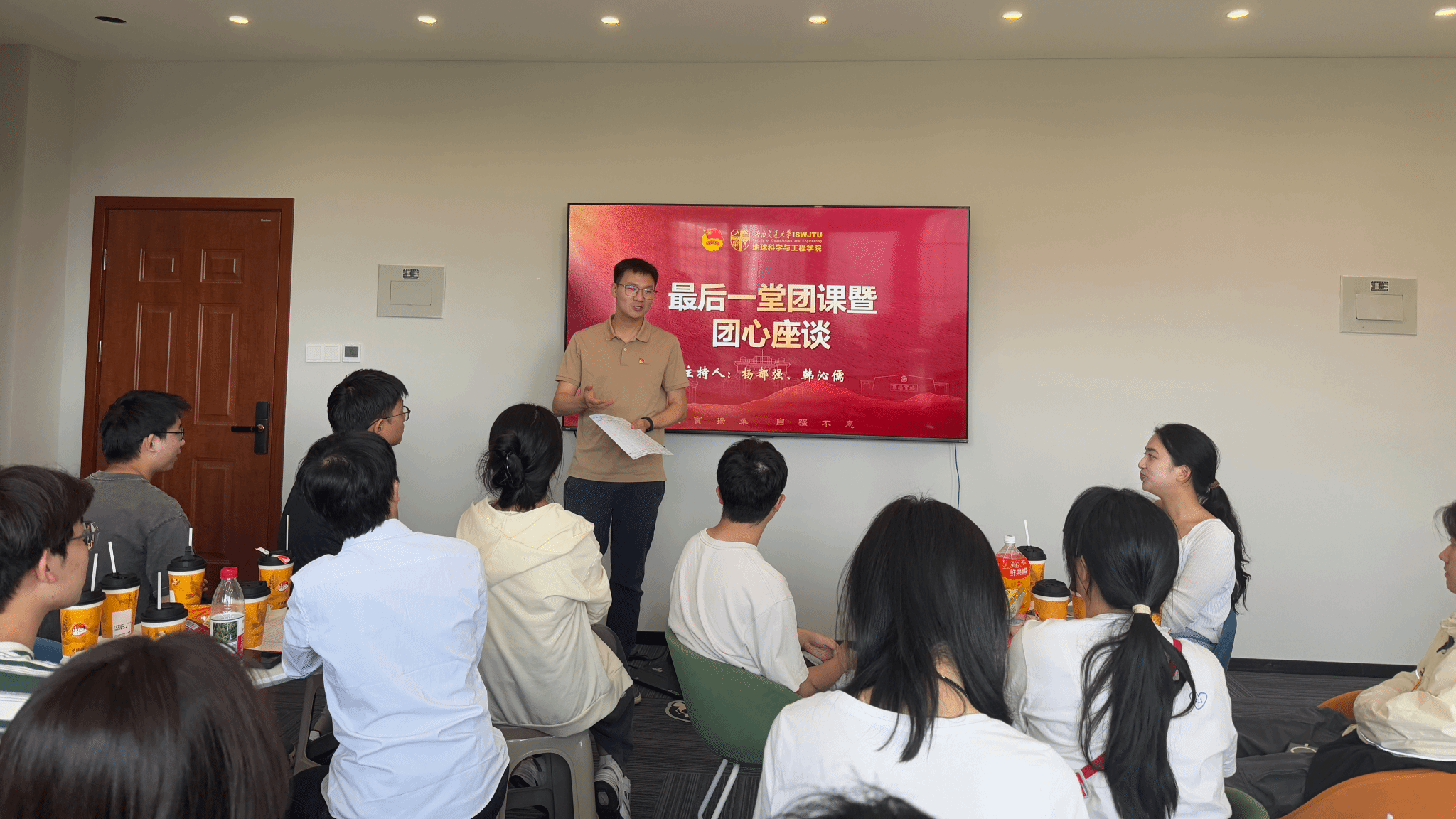 团委举办2025届毕业生最后一堂团课暨第四期“团心茶话会”,2025届20名毕业班团支部书记参加。院团委书记杨都强主讲团课,2025届毕业班辅导员梁爽、李林遥、胡佳慧及团建中心指导老师黄欣宇列席。会议由研究生会指导老师韩沁儒主持。