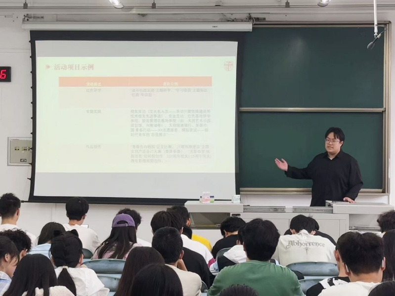 最后,地学青协会长马君逸就“青春告白祖国·青春喜迎校庆”主题实践团日活动的策划与实施作了专题讲解。他介绍了研学实践、文创设计、主题演讲等多种活动形式,鼓励各团支部积极创新,并明确优秀成果将纳入思政类第二课堂学时,有效激发了团干部们的组织热情。