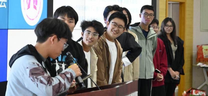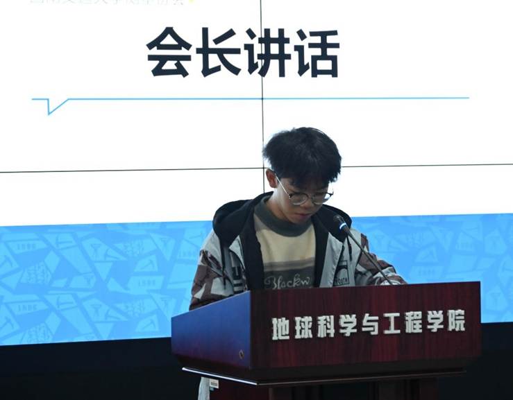 第一环节是测量协会会长周希海开场发言。会长周希海向加入测量协会的新成员表示热烈欢迎,并且和大家分享了关于自己的经历。作为测绘专业学生,他入学便加入测量协会,从普通学员逐步成长为协会会长。他坦言,初任会长时曾因经验不足心存忐忑,但在统筹协会事务的过程中,自身的组织与表达能力得到显著提升,同时也谦逊提及仍有不足,盼获大家包涵。从会长的话语之中,大家已经感受到了来自测量协会这个大家庭的融融暖意,也对新学年充满了信心。
