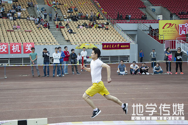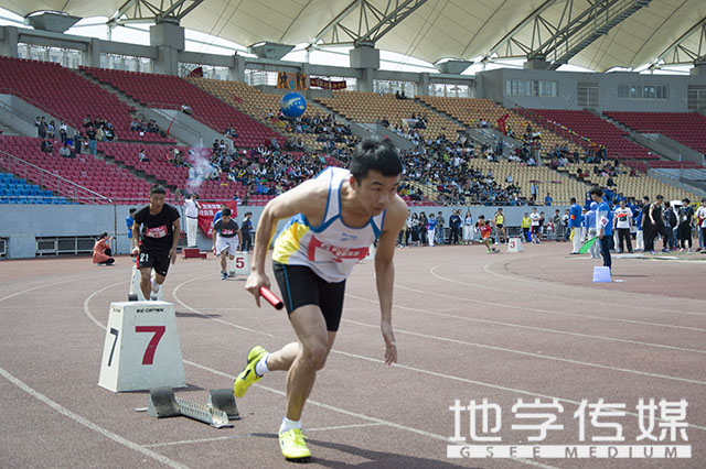 首先进行的是学生甲组男子4X400米决赛。我院选手位于第6道。他们集中精神、屏息以待,随时做好接棒准备。随着一声发令枪响,比赛正式开始。我院第一棒选手杨晓龙竭力冲刺,努力为后面的队友提供时间优势。随后,第二棒选手在接棒后也迅猛提速,努力保持着近50米的优势。而当我院第三棒队员接棒时,其他兄弟学院选手赶超了过来,我院选手在弯道处被超越。随后,接到第四棒的选手则奋起直追。最终在选手们的协作努力下,我院获得了总排名第四的好成绩。