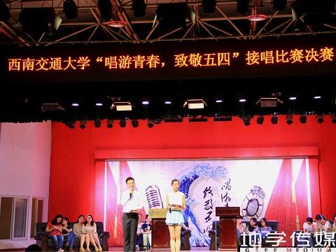 2015年4月27日晚,由地球科学与环境工程学院分团委主办,地球科学与环境工程学院学生会承办的“唱游青春,致敬五四”接唱比赛决赛在一食堂三楼隆重举行。到场嘉宾有政治学院团委书记吴磊,生命学院团委副书记魏源成,公管学院团委副书记张哲,电气学院辅导员高晗雨、林静英老师,艺传学院辅导员王远方老师,经管学院辅导员任凯利老师和每日大赛