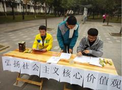 二十二日上午十点许,班委会成员在南区三食堂门口集合,对活动场地进行布置。十点半,本支部各成员基本到场,正式开始本次特色主题团日活动。团支书对参与此次活动的各位成员进行了合理的工作安排。在接受了工作安排后,各成员各就其位,热情高涨的投入到活动中来。一部分成员学进行传单的发放,部分成员负责对参与活动的同学进行知识问答,红歌演唱,部分成员负责奖品的发放,部分未分配到工作的成员们也积极主动的参与到宣传活动中来。值得一提的是,有几位特别热情积极的成员主动贡献了一部分东西作为此次活动的奖品,十分令人感动。总体来说,在整场活动过程中,各支部成员积极投入,热情高涨,促进了支部成员间关系融洽,锻炼了支部举办团日活动的能力,为将来将本支部的团日活动办的更好打下了坚实基础。