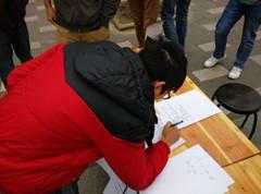 被邀请参与到此次活动中的各位同学表达了对本次活动的高涨兴趣。他们主动上来咨询本次活动的主题和形式,饶有兴趣地回答负责成员提出的相关问题,对于不明白的地方还特别提出疑问,成员们也仔细做出了回答。在红歌板块,大部分参与同学表现得比较羞涩,这是可以预料到的。不过有少数同学回答完有关歌词的问题后落落大方的即兴引吭高歌,赢得了周围同学的欢呼与掌声。