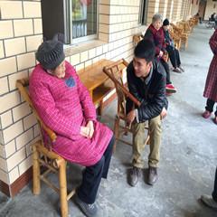 由于有的老人走路不方便,一直都是坐在轮椅上,我们就搬来板凳和老人们坐在一起。我们和老人们一起聊天谈论日常生活,聆听老人的故事。我们也一起祝老人们身体健康、生活快乐、长命百岁,答应老人我们以后会经常去看他们。其实我们都知道,老人缺的不仅是物质上的资源,还有内心精神上的陪伴。他们要求的并不多,只是希望我们这些后辈能够经常去看看他们,和他们一起聊天,让他们感觉不再孤单。
