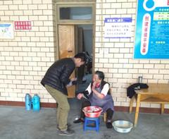 在我们正前方的是一个院子,在门的右手旁是几栋住宿楼,老人们就住在里面。当我们到达时,有几位老人在园中散步。通过交谈,老人告诉了我们他们的情况,大多是因为子女工作在外比较忙,没时间照顾他们,他们才被送到这里,也有的是无儿无女,孤独一身地生活。他们中有的是军人,有的曾经是教师,落寞的眼神、被岁月碾过的沧桑脸庞、驼掉的脊背让我们的心不禁地揪紧。养老院中还有数位年龄高达99岁的老人,他们都已行动不便,吃穿住行都需要护理人员服侍。