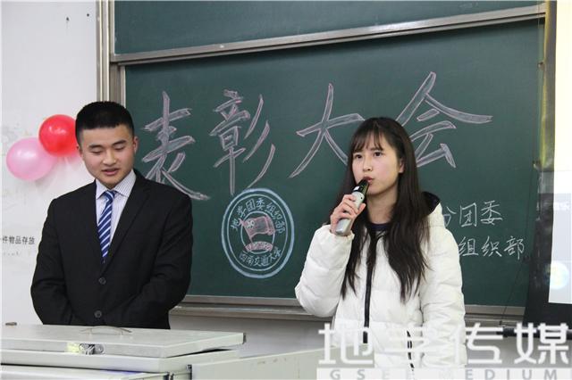 然后是颁奖环节,获奖的团支部有:13级地质第三支部、14级测绘第二支部、14级遥感支部、14级茅测支部、14级地质第一支部、14级地质第二支部、14级地质第三支部、14级地信支部、14级环境第二支部、14级消防第一支部和13级消防支部,由杨都强老师为他们颁奖并与获奖班级合影。