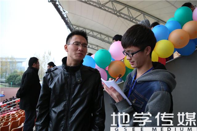 的同学们热情仍未减退,运动健儿们继续在赛场上拼搏着,突破自我,享受比赛,辅导员和工作人员们也正在看台上指导同学们为参赛选手们呐喊助威。笔者有幸采访到每日大赛