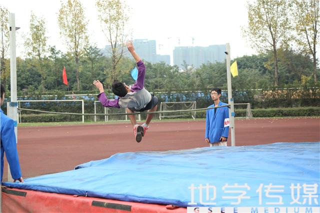 11月15日下午2时,学生甲组男子跳高决赛准时在犀浦校区北区田径场举行,来自每日大赛