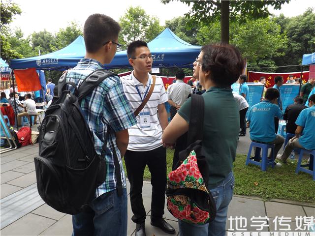迎新过程中,地学传媒中心是一支特殊的队伍,他们除了肩负着采访新生、家长和老师,报道迎新的动态和进展之外,还热情积极地引导新生,为他们答疑解惑。新闻部的记者一手拿笔记本和笔,一手帮助新生提东西;摄影部的记者脖子上挂着单反相机,拍完照就引导新生办理入住手续,补缴费用等等。他们边走边聊,跟新生讲解交大的概况,生活注意事项,接下来几天学院的时间安排等等,同时也让他们谈了谈来学校的感受,对心理上的一些困惑进行了疏导。并且跟家长也进行了简单的沟通。传媒主席龚心瑀也毫无架子,来到迎新现场帮助新生提行李,引导手续办理。