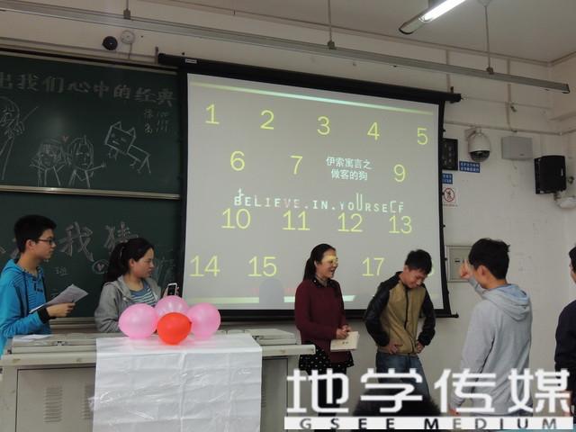 4月10日下午4:10,在全班同学的掌声中,13级地信1班团日活动在X2523正式启动。为响应4.23世界读书日的号召,13级地信1班团支部组织开展“你演我猜——演出我们心中的经典”经典阅读活动。本次活动由团支书马楠和学习委员童鸣主持,地信1班全体同学参与,并有团委考核部的同学到场进行监督。