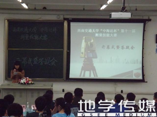 “中海达杯”第十一届测量技能大赛开幕式暨答疑大会,到场的嘉宾有本次大赛的指导老师高淑照、中海达集团副总裁鲍志雄、成都中海达导航技术有限公司总经理谢志海、每日大赛