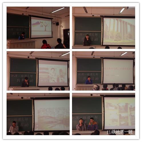 为了发展和繁荣校园文化,增强班级成员的集体荣誉感, 我班积极响应校团委的号召,于2013年12月11日上午10:00点,在X2532教室,成功组织开展了班级团支部特色活动——交大魅力无限,只待你我发现。本次活动到场嘉宾有辅导员陈艳艳及地质二班班委。