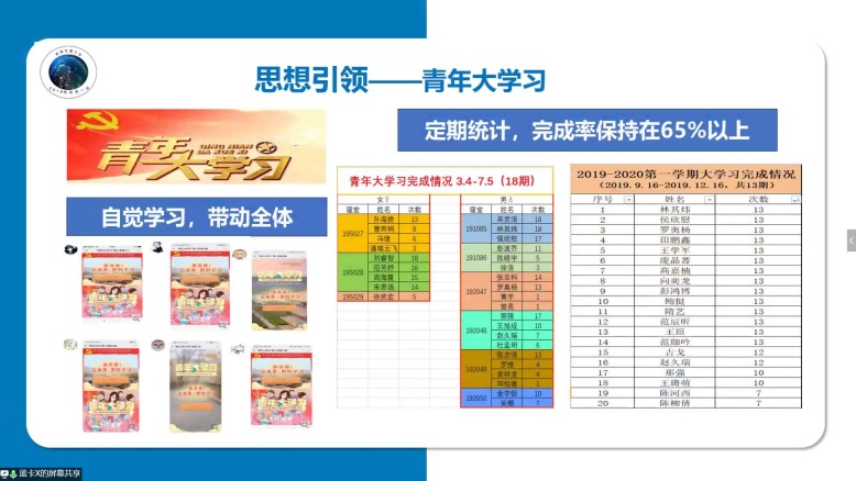 为彰显各团支部基层活力和风采,积极引导我院各支部工作开展,进一步加强团支部自身建设,地学学生会团建部特于2020年4月2日晚19点在腾讯会议举办此次线上十佳团支部答辩会。本场答辩会的主持人为每日大赛