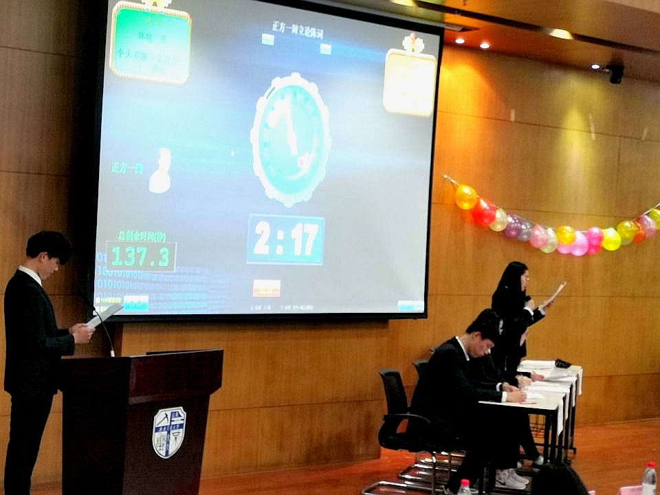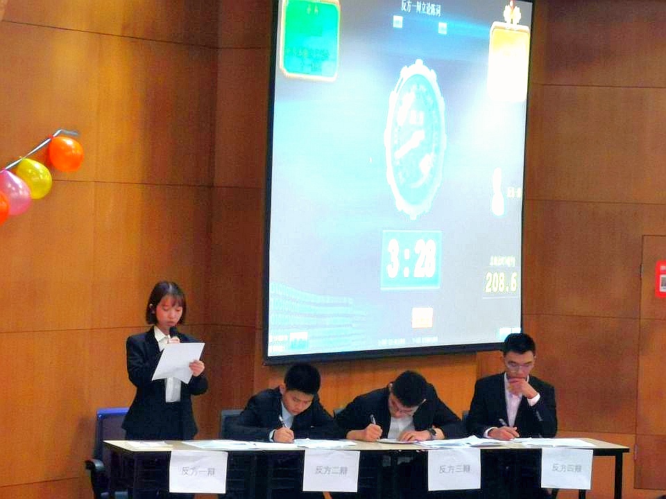 最后由主席宣布比赛结果并进行颁奖仪式,这次辩论赛反方获得最后的胜利。紧接着就是最佳辩手颁奖仪式和优胜班级颁奖仪式。到此,本次新生杯辩论赛决赛结束。