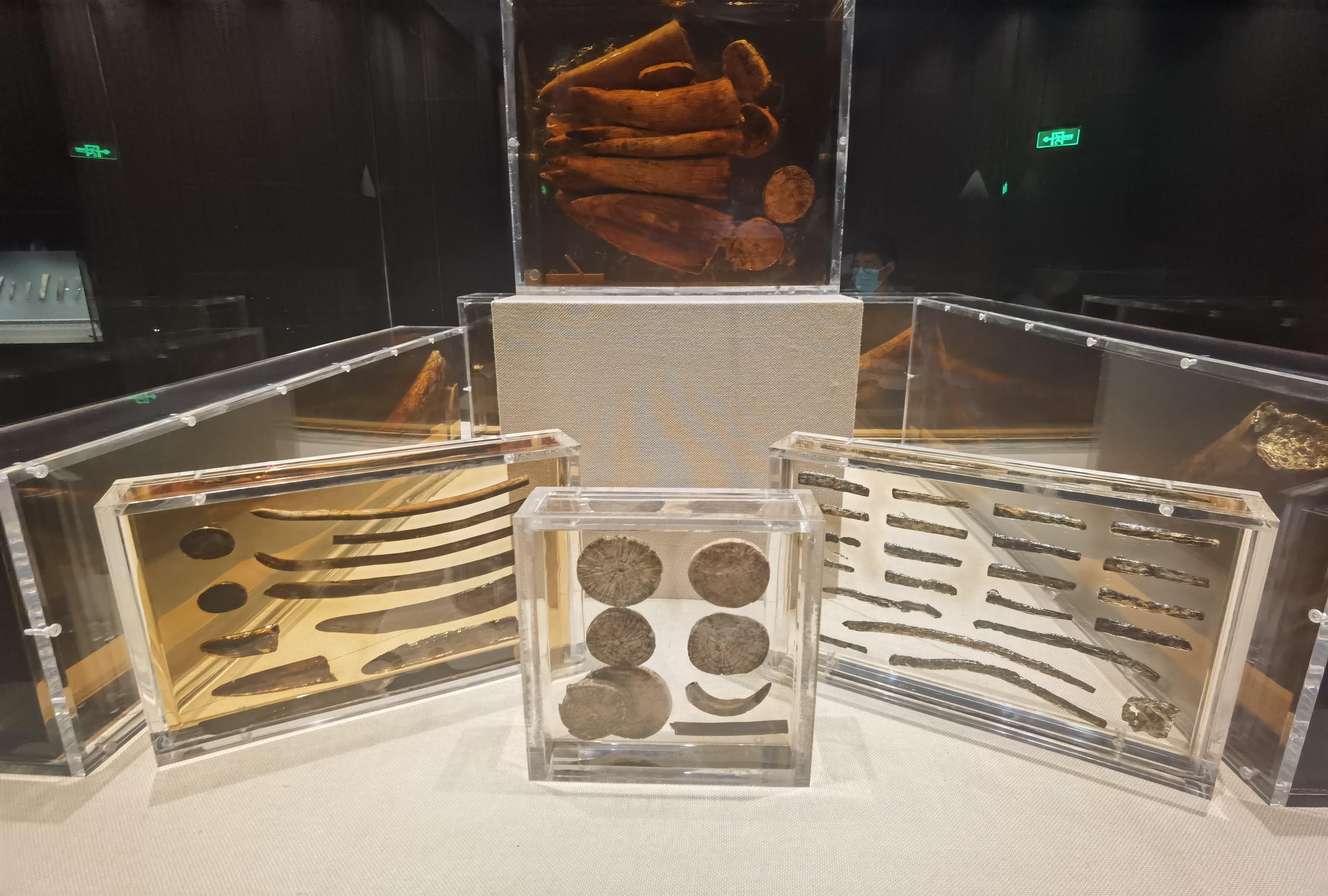金沙遗址出土了数以吨计的象牙和众多的野猪犬齿、鹿角、犀牛骨、马骨等动物遗址以及大量的乌木及植物遗址。