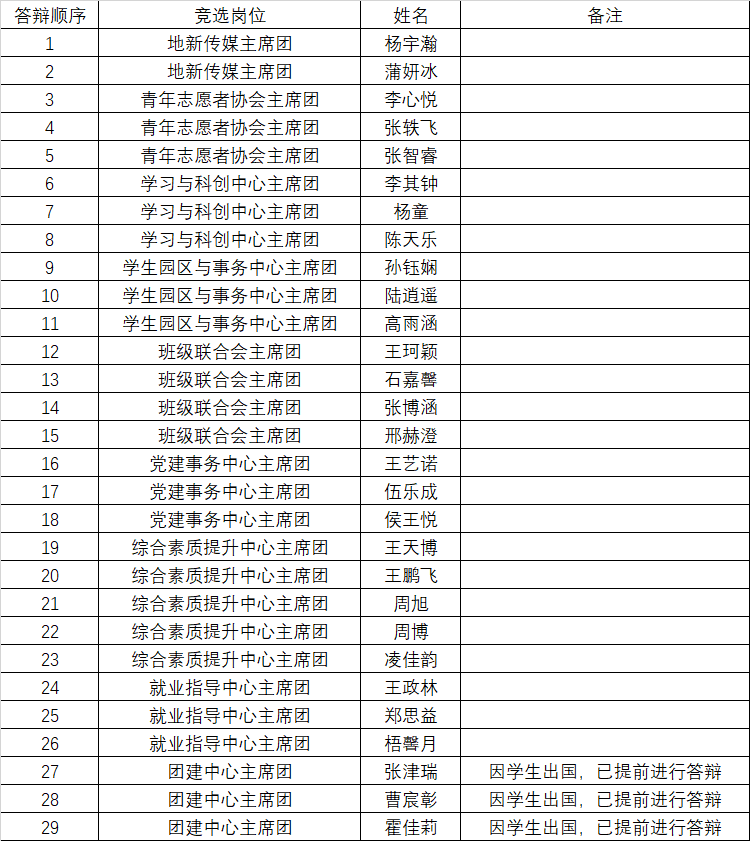 2024年团学组织主席团换届工作的通知》,现开展团学组织主席团换届答辩工作,有关事宜通知如下: