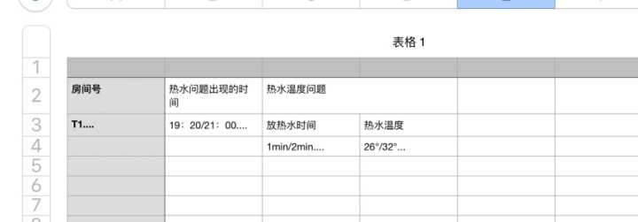 1. 热水方面有问题的寝室填写如下表格交给生活委员。