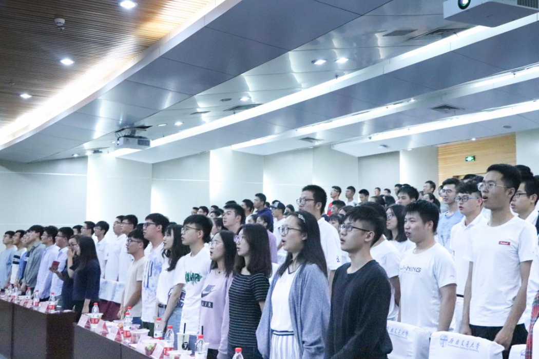 奏唱国歌过后,便是嘉宾发言环节。学生会指导老师-李国欣老师、前任学生会主席-郝建龙主席、现任学生会主席-高颖主席分别上台,并表示自己对这届学生会全体成员充满了信心,希望学生会的每一位成员不仅能在学生会里面学到能力,还能处理好工作与学习之间的关系,不要让自己留下遗憾。李国欣老师提到了在大学要始终保持“三心”:用心、热心、崭新。我们要用心地完成自己手边的每一件事,在待人处事时要时刻保持热心,永远要以一个崭新的面貌面对未来。