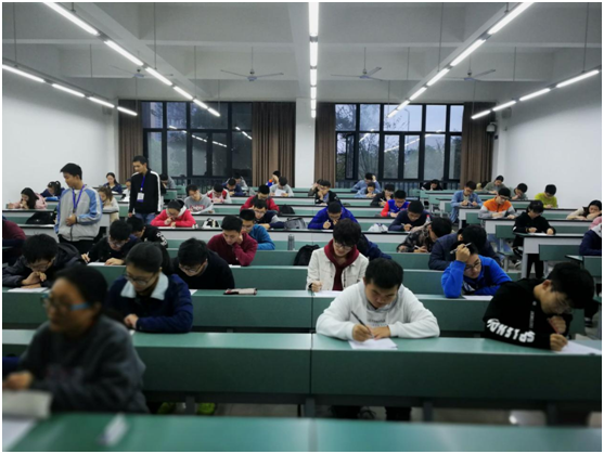 本次初赛模式为答卷,有早晚两场,分别于昨天午间12:00—13:00,下午18:00—19:00,在4号教学楼4153进行,参赛者来自每日大赛